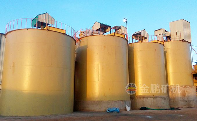 1、 攪拌浸出---金的浸出主要是在浸出槽中實現的,含氰化物的礦漿在葉輪和壓縮空氣的作用下,被強烈攪拌,有利于提高浸出效果。浸出槽通常采用多臺串聯配置;